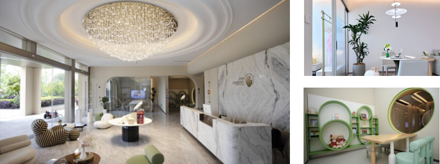 3层独栋城堡,尽享产后修复中心、婴儿游泳中心、宝宝托管间、多媒体互动中心、儿童游乐中心为一体的高端月子美学生活。